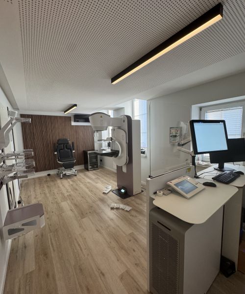 The mammography is the X-ray examination of the breast. Our used digital technique achieves a higher resolution with a reduced radiation exposure for the patient. Before the exam the patient is consulted and examined by the radiologist (inspection and palpation).